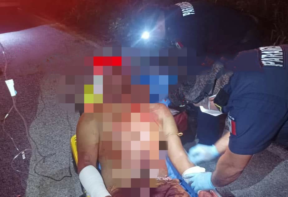 Rápidamente paramédicos en la ambulancia Delta 3, llegaron al sitio y atendieron a los heridos que tenían aliento alcohólico, quiénes quedaron con los rostros desfigurados, cabe mencionar que ninguno portaba el casco protector.