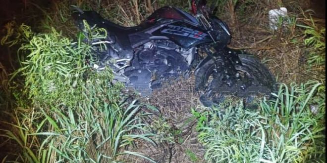 Al estar transitando en el citado tramo carretero, Lizama Cab, perdió el control de su manubrio y derrapó sobre la carpeta asfáltica recorriendo varios metros hasta quedar dentro de la maleza.