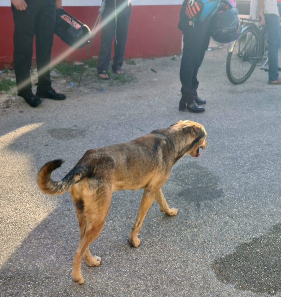 Tetiz, Yuc., a 25 de octubre 2023.- Con probable fractura de tibia y peroné acabó Elena Guadalupe Díaz López, al derrapar con su colega de trabajo en motocicleta por culpa de un peludo que se les atravesó por la calle 20 con 25 de este municipio, la tarde de ayer.