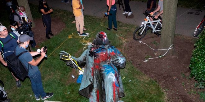 El presidente Donald Trump tuiteó rápidamente sobre el derribamiento, quejándose: “Los policías de la capital no están haciendo su trabajo, pues vieron cómo una estatua fue derribada y quemada”. Después del derribamiento, la mayoría de los manifestantes regresaron pacíficamente al Parque Lafayette, aledaño a la Casa Blanca. Información NOticieros Televisa