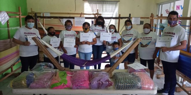 Mujeres y hombres aprendieron durante seis meses oficios como urdido de hamacas, manualidades, corte y confección así como elaboración de piñatas a fin de que puedan emplearse en un futuro