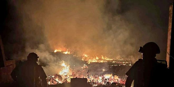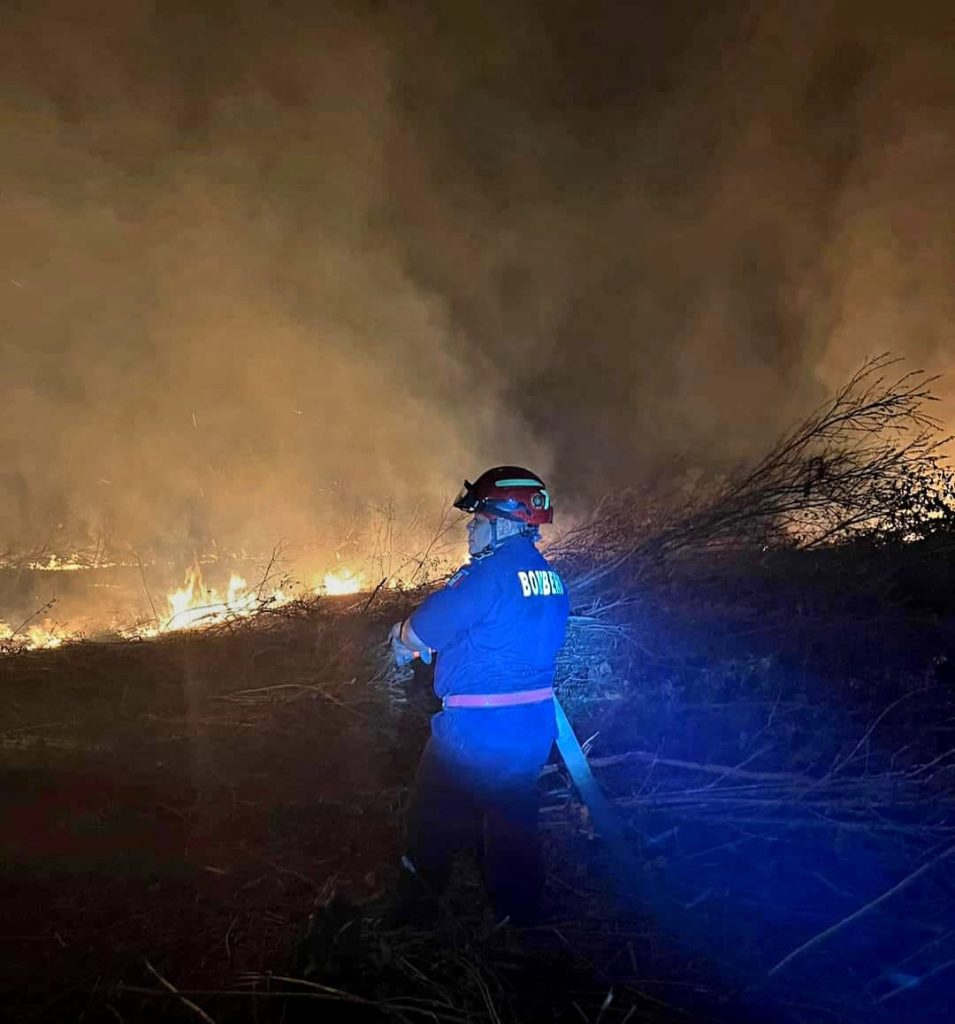 Muna, Yucatán.- 29 Febrero 2024.- Anoche se genero un incendio de grandes proporciones sobre la carretera Muna-Ticul, a la altura de la comisaría de San José, lo cual puso en alerta a las autoridades que acudieron a la zona a sofocar la conflagración.