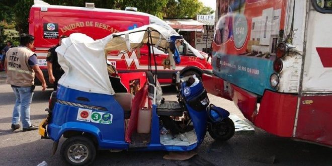 El percance ocurrió cuando el conductor de un mototaxi, identificado como José Canul Ek, transitaba detrás de un autobús de la ruta Ticimul, el cual se detuvo a la altura de la dirección mencionada, pero el mototaxista estaba distraído y no se dio cuenta de esto, de modo que se estrelló por alcance.