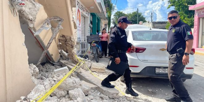 Inicio / Destacada policía / Descuido durante demolición provoca daños a vehículo en el centro de Tizimín