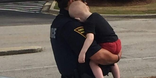 Una foto desgarradora muestra a un oficial de policía de Carolina del Norte consolando a un niño de un año, cuyos padres sufrieron una sobredosis de heroína en un automóvil dentro de un estacionamiento.