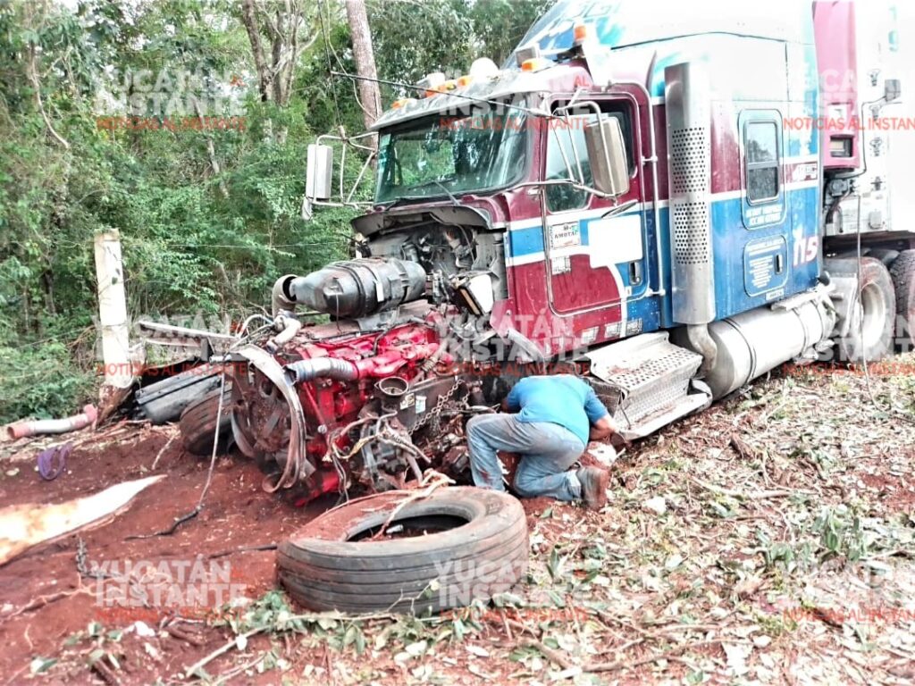 El ‘trailero’ de la empresa de transportes RGC, se dirigía a la capital yucateca cargado de material para la tienda Home Depot, pero al estar pasando a la altura del kilómetro 103, cayó en brazos de Morfeo.