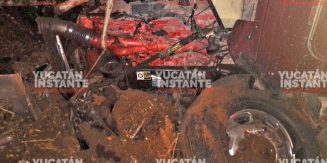 Halachó, Yuc., 04 de enero 2022.- Un pestañazo fue suficiente para que el operador de un tractocamión pierda el control y acabe impactando brutalmente en los matorrales en las primeras horas de ayer lunes en montes de la carretera federal Mérida-Campeche.