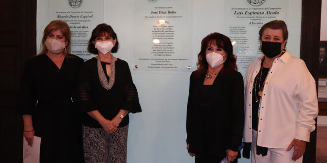Mérida, Yucatán, 28 de enero de 2022.- El retrato al óleo de Daniel Ayala Pérez, compositor de la reconocida suite sinfónica “Tribu”, y la placa alusiva a los 25 años del poema “Sencillez”, de José Díaz Bolio, ya se encuentran en el Museo de la Canción Yucateca, que enmarcó un homenaje con el objetivo de preservar y difundir los legados de ambos creadores.