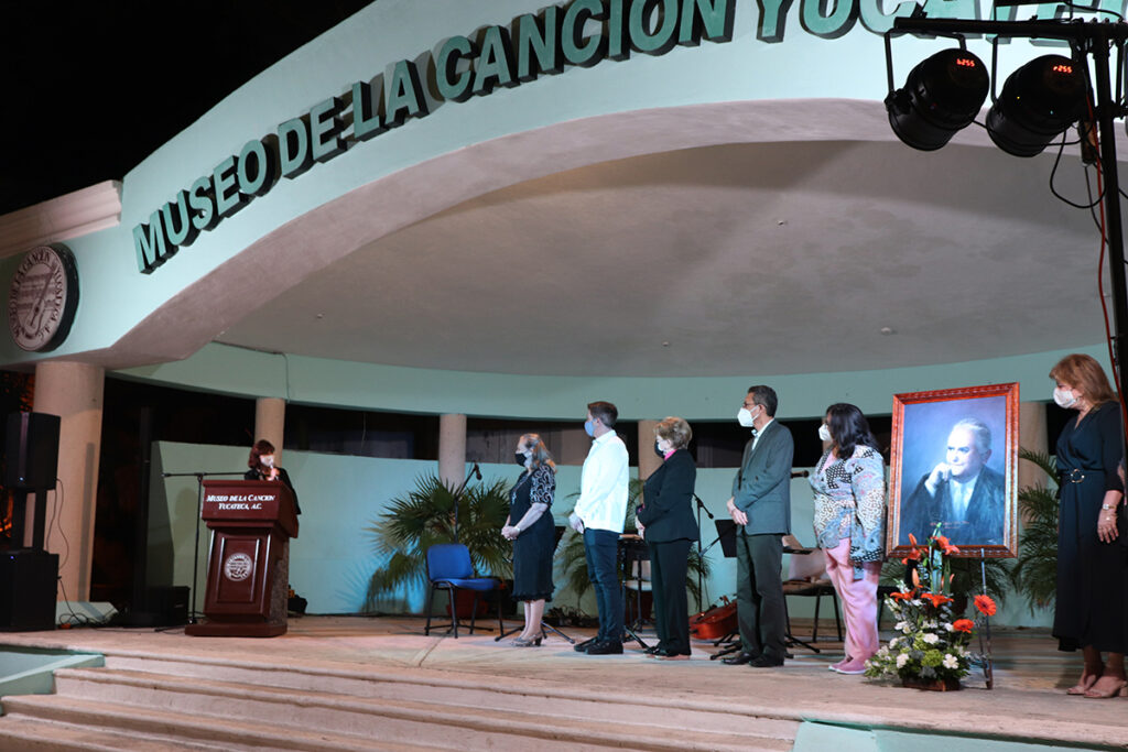 Se contó con la participación de la vicepresidenta del espacio, Ligia Lara Lara; la presidenta de Fundación Bepensa, Margarita Ponce Díaz; el autor del retrato, Alonso Gutiérrez Espinosa, y la nieta del músico laureado, Beatriz Nicté Ha Ayala.