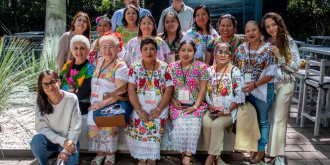 Ejemplo de ello fue el Taller Intercambio de Puntadas. El punto de cruz, puntada principal en México, en el que las yucatecas intercambiaron técnicas de bordado y confección con sus homólogas y homólogos de otras partes del país para mostrar la riqueza cultural mexicana a través de una cartografía colaborativa construida entre las y los asistentes.