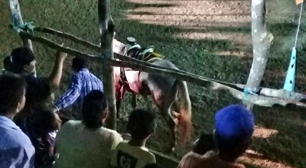 Tetiz, Yuc., 19 de agosto (Yucatán al Instante).- A pesar de estar prohibido los torneo de lazo en Yucatán, en el interior del Estado, las autoridades locales se las ingenian para burlar esta Ley, tal como se pudo ver este fin de semana en Tetiz, donde un caballo acabo destripado y falleciendo en “el ruedo de la muerte”.