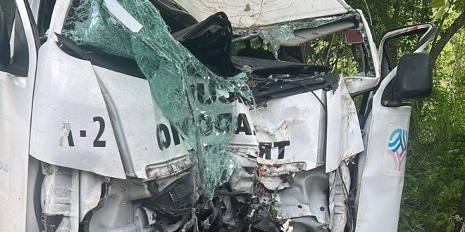 Maxcanú, Yuc., a 30 de agosto 2023.- El operador de una ambulancia de traslado del Ayuntamiento de Maxcanú resultó prensado tras salirse de la vía asfáltica e impactar contra un árbol.