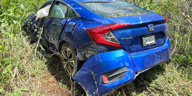 Fue entonces que al transitar sobre dicho tramo salado, es decir en la Kinchil-Celestún, se le pincho un neumático para provocar su tremendo accidente con saldo en miles de pesos materiales, poco después de las 10 de la mañana de este jueves.