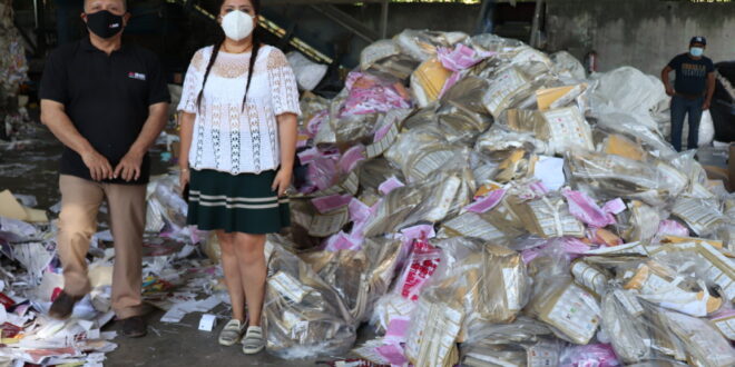 El Instituto Nacional Electoral (INE) en Yucatán llevó al cabo la destrucción y reciclaje de 23.5 toneladas de diversa documentación utilizada durante el proceso electivo 2020-2021, así como de la pasada Consulta Popular, entre ellas boletas sobrantes y votos.