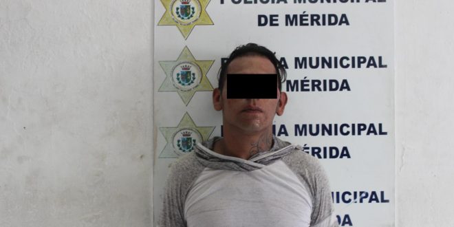 Acusado del robo de una soguilla elementos de la Policía Municipal de Mérida detuvieron hoy a las 12:30 a Mario Joaquín S. C.