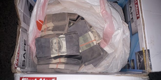 Los policías estatales detuvieron esta tarde a Erick J. C. de 24 años de edad, conductor de un automóvil marca Kia color gris con placas del estado de Yucatán, a bordo del cual transportaba los billetes en una caja de cartón con cinta canela.