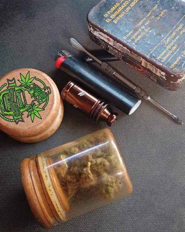 Al practicar una revisión preventiva al vehículo, hallaron en una bolsita tipo cosmetiquera, un frasco transparente con tapa de madera que contenía cannabis, una picadora de madera y una pipa.