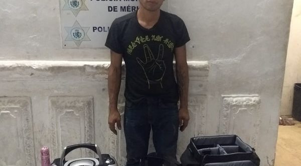 Detiene la Policía Municipal a sujeto que llevaba varios artículos ‘robados’ en el centro de Mérida