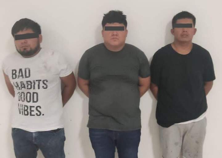 Los detenidos son Ernesto Javier S. S., de 34 años de edad, originario de Chiapas; Feliciano R. H., de 24, de Bacalar, Quintana Roo y Fernando B. R., también de Bacalar, que serán puestos a disposición de las autoridades ministeriales.