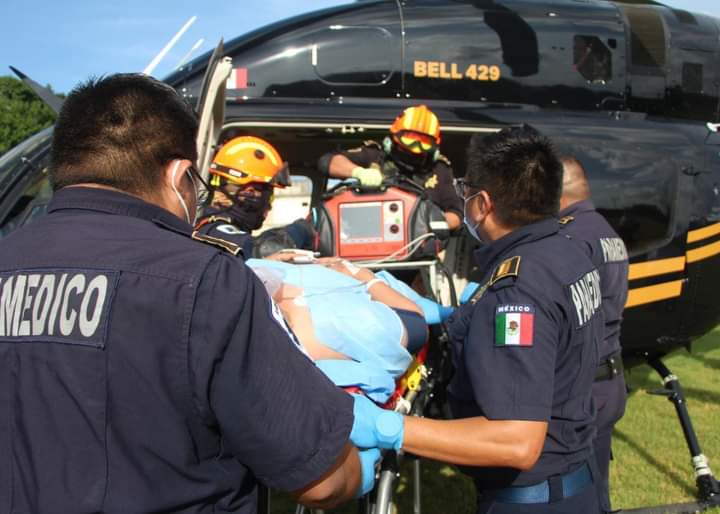 En cuanto al lesionado, paramédicos de la SSP con equipo de soporte vital avanzado, lo trasladaron de Tekax a Mérida en el helicóptero Bell 429 de la corporación; su estado es de gravedad. Recibió el tiro en la cabeza.