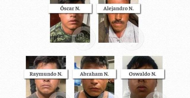 Los detenidos Óscar ‘N’, Alejandro ‘N’, Raymundo ‘N’, Abraham ‘N’ y Oswaldo ‘N’ presuntamente participaron en el linchamiento de Daniel Picazo en Papatlazolco