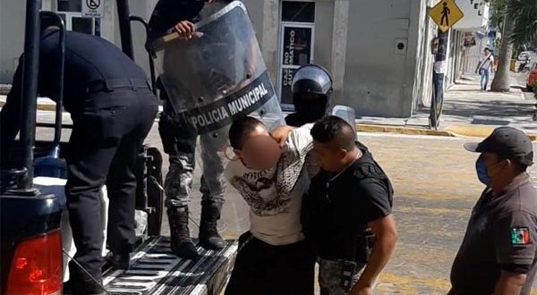 Por tal motivo, Emilio Caamal Gutiérrez, director de la policía municipal indicó que el sujeto identificado como José M.C. de 45 años de edad, proveniente del Estado de Quintana Roo, fue detenido alrededor de las 4 de la tarde, luego de que incitara a las personas que transitaban por el rumbo para continuar con manifestaciones en los bajos del palacio municipal.