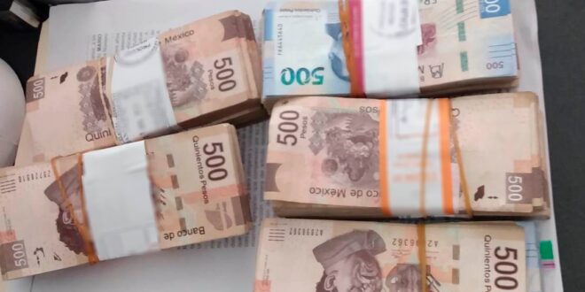 El personal de la Guardia Nacional identificó a la pasajera que pretendía abordar un vuelo con destino a la ciudad de Veracruz, y quien reconoció ser la propietaria de la bolsa de mano, en la cual localizaron varios fajos de billetes con denominación de 500 pesos cada uno.