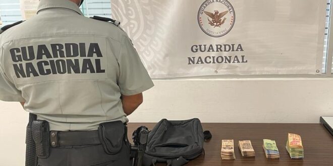 Mérida, Yuc., 21 de enero 2022.- Elementos de la Guardia Nacional (GN) detuvieron a una persona en posesión de más de 400 mil pesos en efectivo, sin la documentación para acreditar su legal procedencia, en el Aeropuerto Internacional de Mérida, Yucatán.