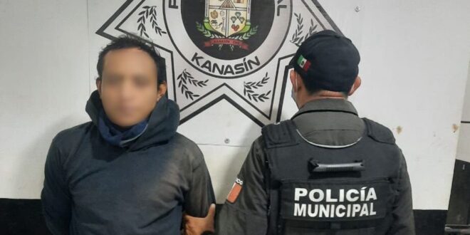 KANASÍN, Yuc., 13 de marzo 2022.- Elementos de la Policía Municipal de Kanasín detuvieron a Ángel Isaac C.R., de 29 años de edad, acusado de robo con violencia con arma blanca a un comercio ubicado en el Fraccionamiento Vivah en Kanasín.