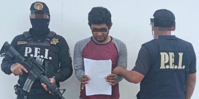 KANASÍN, Yuc., 16 de marzo 2024.- Por el delito de feminicidio cometido anteayer en Kanasín, la Policía Estatal de Investigación (PEI) de la Secretaría de Seguridad Pública (SSP) detuvo hoy a Eduardo R. M., de 32 años, trailero originario del estado de Tabasco.