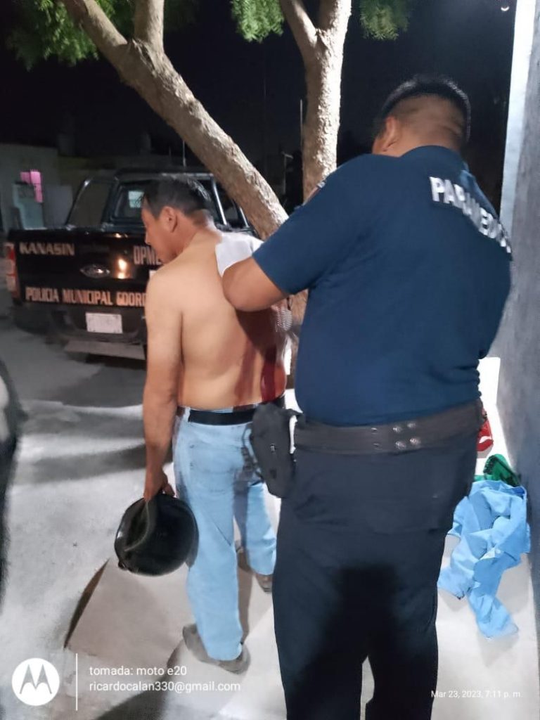 KANASÍN, Yuc., 24 de marzo 2023.- Elementos de la Policía Municipal de Kanasín detuvieron a un sujeto que, además de que no quiso pagar un producto que adquirió vía internet, lesionó con un arma blanca al diligenciero que se lo llevó.