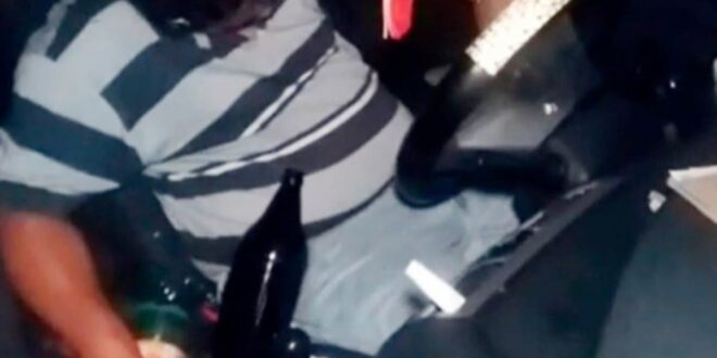 Testigos vieron a “Tony” Cano y se acercaron a golpearle el cristal para que se despierte, pero fue inútil, pues incluso el conductor se durmió con una “caguama” en los brazos.