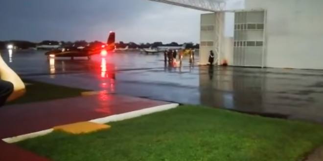 Apenas aterrizó la aeronave, llegó un convoy policías de la SSP comandado por su titular Luis Felipe Saiden Ojeda.