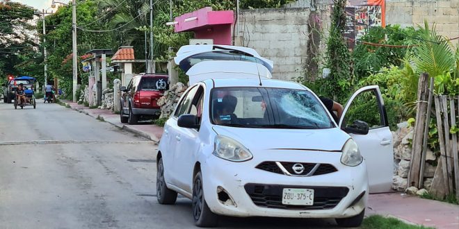 Kinchil, Yuc., a 4 de septiembre 2023.- En un sonado hecho una deudora molesta porque le fueron a pedir su respectivo pago de su préstamo, propino al vehículo de la financiera un maderazo que le hizo añicos el parabrisas.