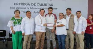 El secretario mencionó que, además de la Beca de Educación Básica “Rita Cetina”, la Coordinación Nacional distribuye la Beca Universal de Educación Media Superior “Benito Juárez” y la Beca de Educación Superior “Jóvenes Escribiendo el Futuro”.