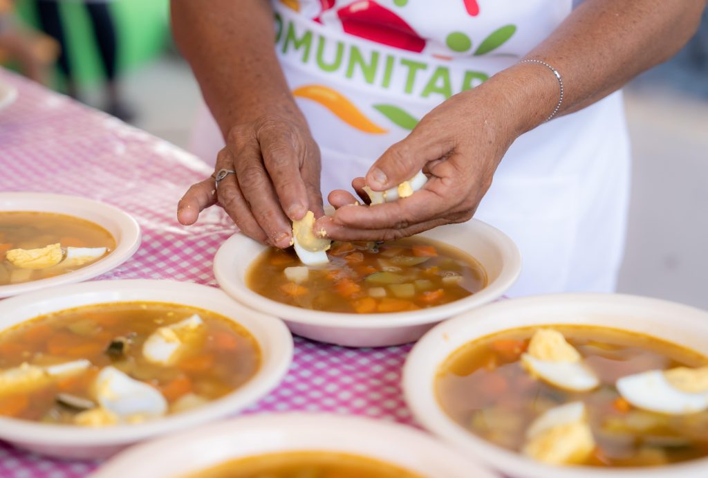 Durante la inauguración, los asistentes degustaron el primer platillo preparado en el lugar: lentejas con huevo, un alimento nutritivo y accesible que refleja el compromiso del programa con la seguridad alimentaria.