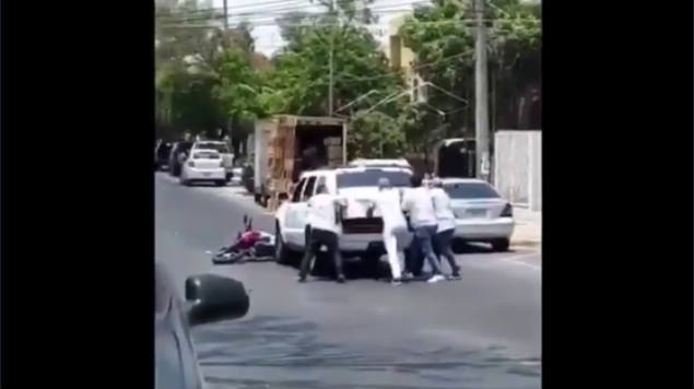 En el video se observa a por lo menos tres personas tratando de meter a una cuarta a la cajuela de una camioneta blanca. Tras un breve forcejeo, observado por al menos otro vehículo que pasaba por la zona, los captores lograron su cometido y huyeron.