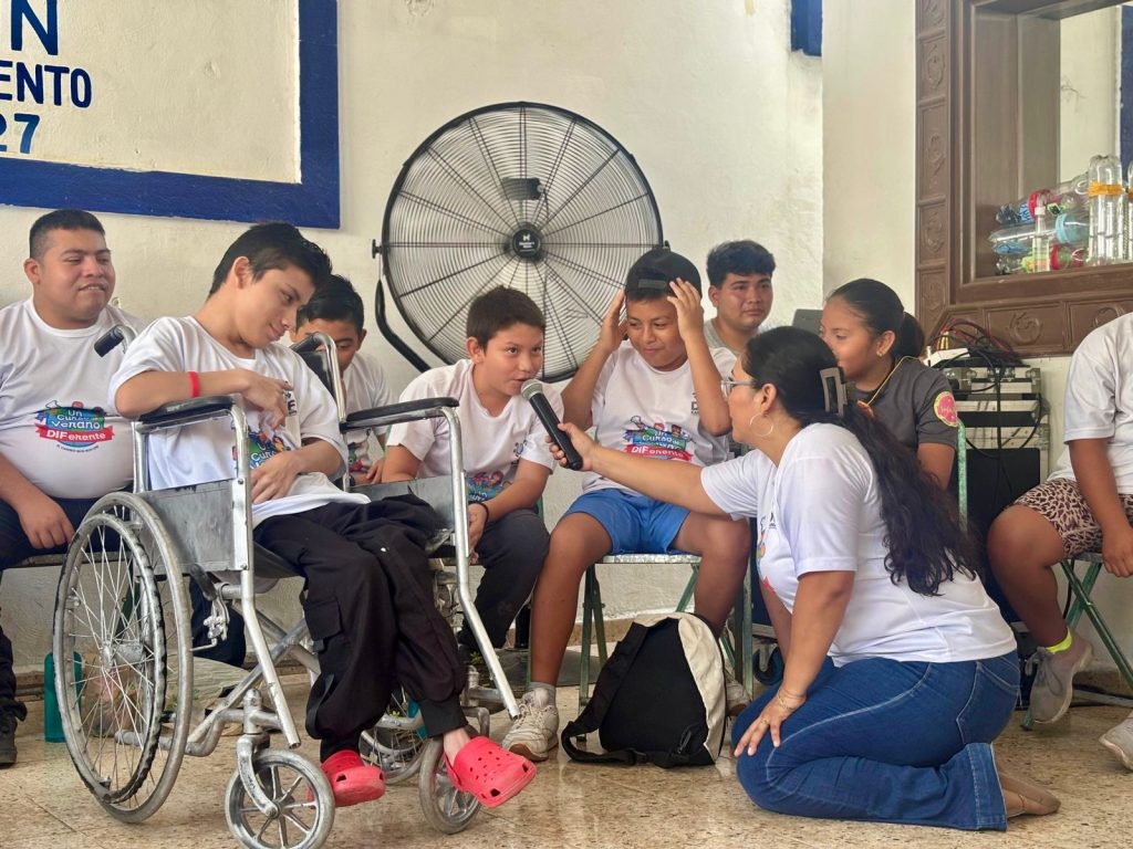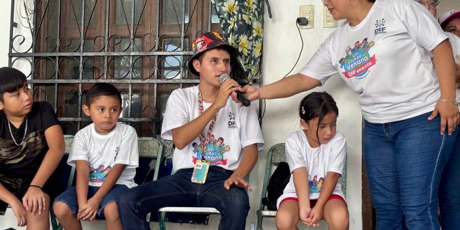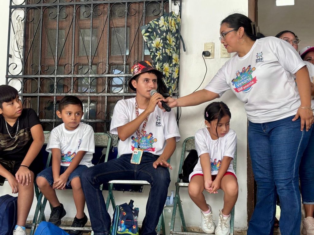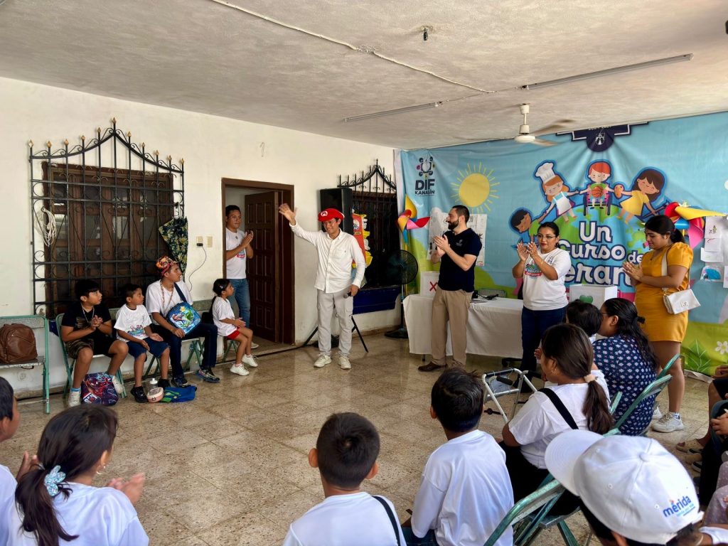 Kanasín, Yucatán a 29 de julio 2025.– De la mano del psicólogo José Antonio Rodríguez Solís, ‘Dimitri’ se llevó los aplausos y creó conciencia entre las niñas y niños que participaron en la plática que se impartió sobre el uso adecuado del celular, esto en el marco de “Un curso de verano DIFerente” organizado por el DIF de Kanasín.