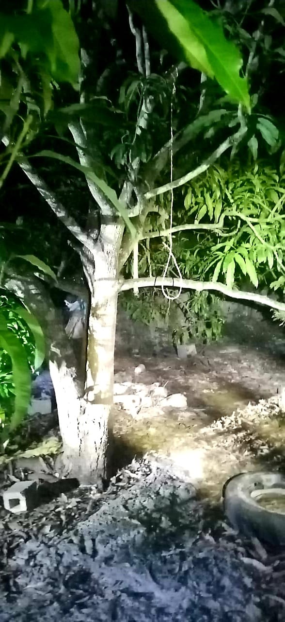 Su familia, que también vive en ese predio, decidió dejarlo allá hasta que se le bajara el coraje y la borrachera, pero como ya había entrado la madrugada de este viernes, el papá identificado como José Alejandro Montero Poot, de 44 años, decidió salir a ver qué pasaba, pero se llevó una amarga sorpresa al ver a su hijo colgado de dicho árbol que está en el patio.