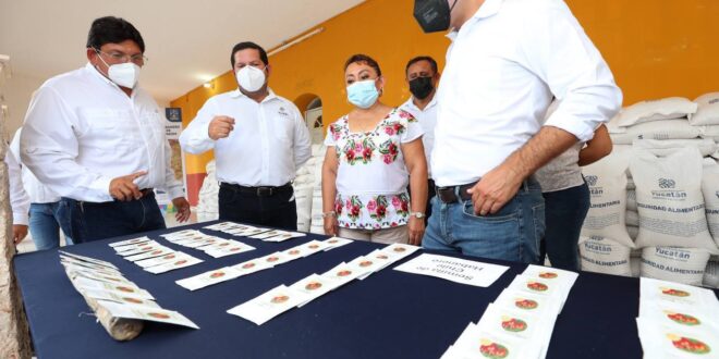 -En gira de trabajo por Chankom, Vila Dosal comenzó con la entrega de semillas de chile habanero y frijol Jamapa, en respaldo a 6,000 productores de 31 municipios del estado.