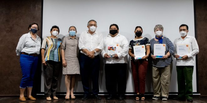 Mérida, Yucatán, a 11 de junio de 2022.- Con el propósito de divulgar el quehacer pedagógico de las maestras y maestros de Yucatán, a través de las diferentes experiencias exitosas, se presentó del libro “Educación, Cultura, Turismo y desarrollo local con jóvenes mayas de Yucatán: Memorias del Bachillerato Intercultural de Popolá 001”, una recopilación de estrategias y retos vividos al poner en marcha este proyecto en esa localidad.