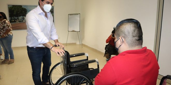 Progreso, Yucatán a 23 de febrero de 2021. “No me queda más que agradecerles su confianza; por nuestra cuenta, continuaremos acercando los servicios y apoyos al resto de la población ”, indicó el alcalde Julián Zacarías Curi mientras entregaba ayer por la mañana sillas de ruedas a 12 beneficiarios.