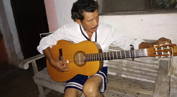 “Empezamos a hacer un conjuntito de cuerdas, pasando, tocando entre la población, como bachatitas. Y así, así seguí y de ahí nos fuimos separando, quedé como trovador solitario, yo y mi guitarra, hasta hoy en día”, conversó mientras afinaba su instrumento.
