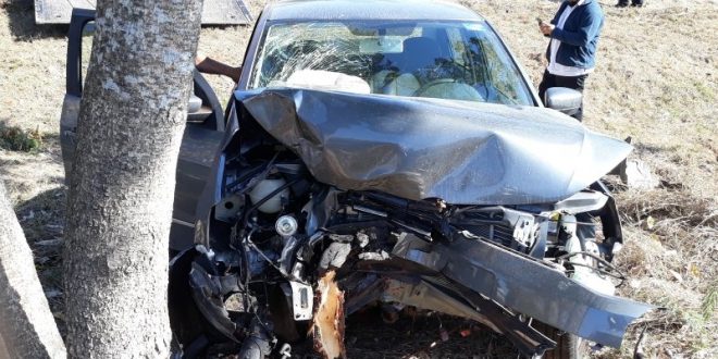 Aparatoso choque contra un árbol deja varios daños
