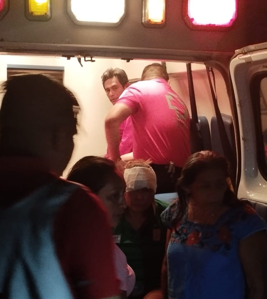 El matrimonio kinchileño bajaba del vecino poblado, luego de llevar un pasaje, pero Ká quien tenía unas copas encima los hizo hasta volcar. Incluso derrapós el treintañero, pero resultó ileso. A diferencia de don Calín y su señora esposa María Roberta Balam, de 49 años, quienes presentaron golpes en el cuerpo y esta última una herida avulsiva en la frente, siendo atendidos por paramédicos de la unidad Yuc-010 de la Cruz Roja.