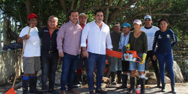 Progreso Yucatán a 02 de diciembre del 2019. A dos semanas de que 18 pescadores se unieran a la campaña permanente de saneamiento que lleva a cabo la Dirección de Pesca y Desarrollo Agropecuario, el alcalde, Julián Zacarías Curi, les entregó herramientas y equipos de protección para desempeñar mejor sus labores, las cuales contribuirán significativamente al mejoramiento de diversas zonas del Puerto.