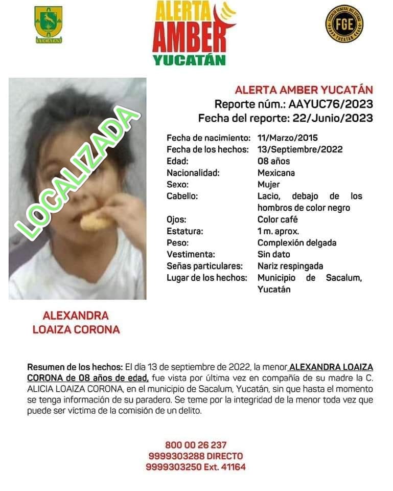 Tras 9 meses de no saber nada, tal como se emitió en el boletín de la Alerta Amber hace 3 días. Finalmente rindió fruto las pesquisas siendo hallada la niña junto con Alexandra, la tarde de ayer lunes en un negocio de comida rápida de la Perla del Sur.