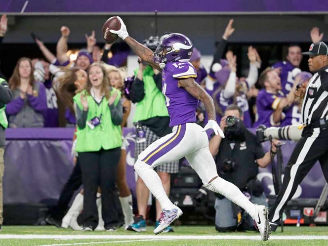 El quarterback Case Keenum conectó con Stefon Diggs en un pase de 61 yardas para touchdown a 10 segundos del final para definir a favor de los Vikingos en una jugada de evidente error de la defensiva de los visitantes.