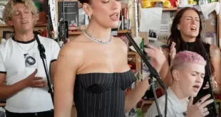 El conjunto se complementa con una blusa transparente en tonalidades doradas, que acentúa su estilo sofisticado y moderno. Además de su bikini provocativo, Dua Lipa ha llamado la atención con su icónico estilo de cabello rojo, que en esta ocasión se presenta en un peinado cuidadosamente estilizado.
