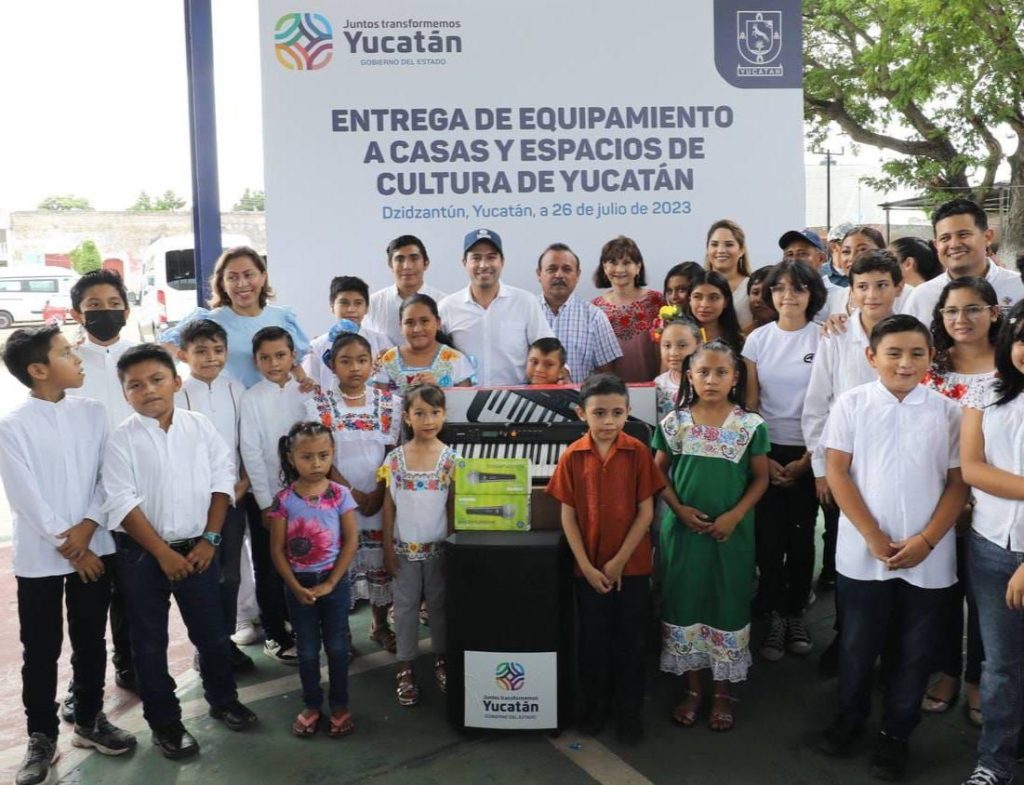 Posteriormente, el Gobernador y la titular de la Secretaría de la Cultura y las Artes (Sedeculta), Loreto Villanueva Trujillo, entregó a niñas, niños y adolescentes, que participan en las actividades del espacio cultural de esta demarcación, un kit de equipamiento que consiste en teclado, bocina y 2 micrófonos, para seguir impulsando acciones de sensibilización artística, orientadas hacia conservar el clima de paz y seguridad de Yucatán.